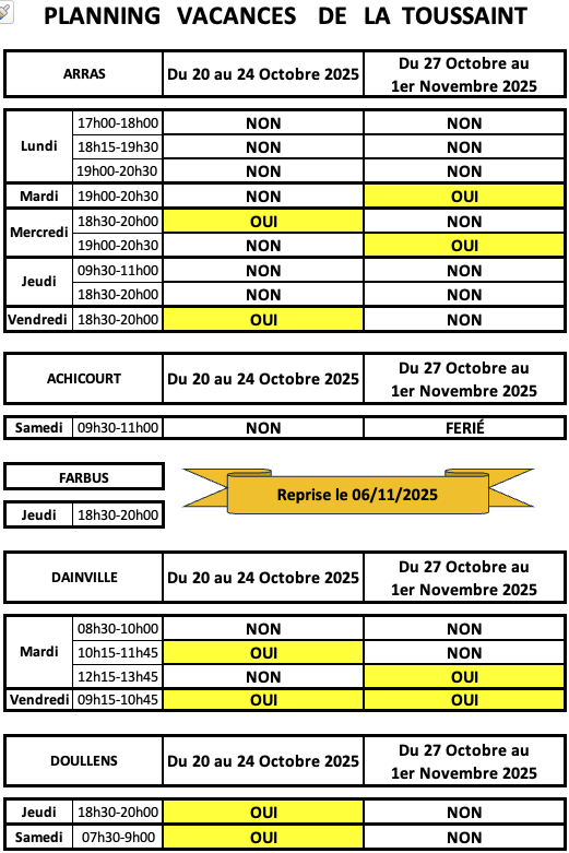 N’oubliez pas que vous disposez toujours des séances enregistrées par vos professeurs et ceux de la fédération. Cettes offre est régulièrement mise à jour.